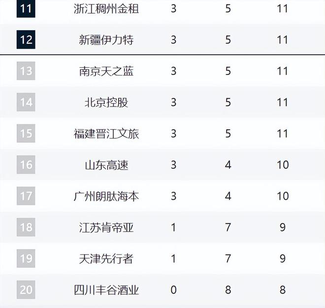 江蘇、天津和四川排在倒數,他們本賽季基本上沒什麽好期待的了。