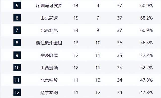 青島隊強勢崛起,主場擊敗廣州隊後以14勝9負升至第4,成為本賽季最大黑馬之一。與之同戰績的深圳隊則在加時賽惜敗,錯失反超良機,兩隊纏鬥激烈,第4至第8名的競爭已進入白熱化。