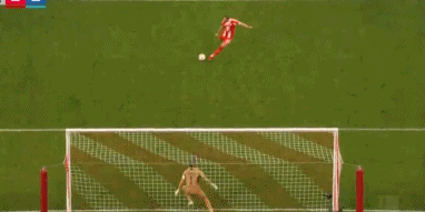 第45分鍾,迪亞斯突入禁區被撞倒,主裁判再次判罰點球,凱恩主罰點球右腳勁射破門,2比1!