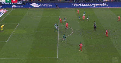 第29分鍾,凱恩回撤接應,一腳手術刀直傳打穿不萊梅的後防線,路易斯-迪亞斯左路高速插上,小角度射門被巴克豪斯撲出。